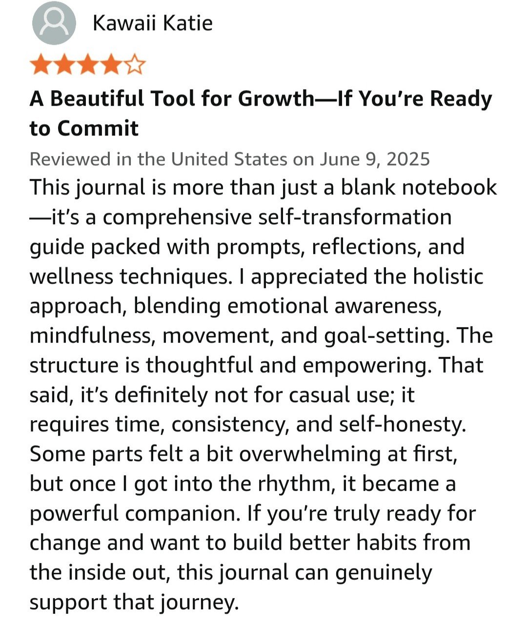 This journal is a powerful, guided self-development tool to help you reconnect with your true self, build emotional resilience and create lasting personal growth. Whether you're seeking clarity, healing, or a renewed sense of purpose, this comprehensive journal is your structured, supportive space to reflect, grow, and thrive.