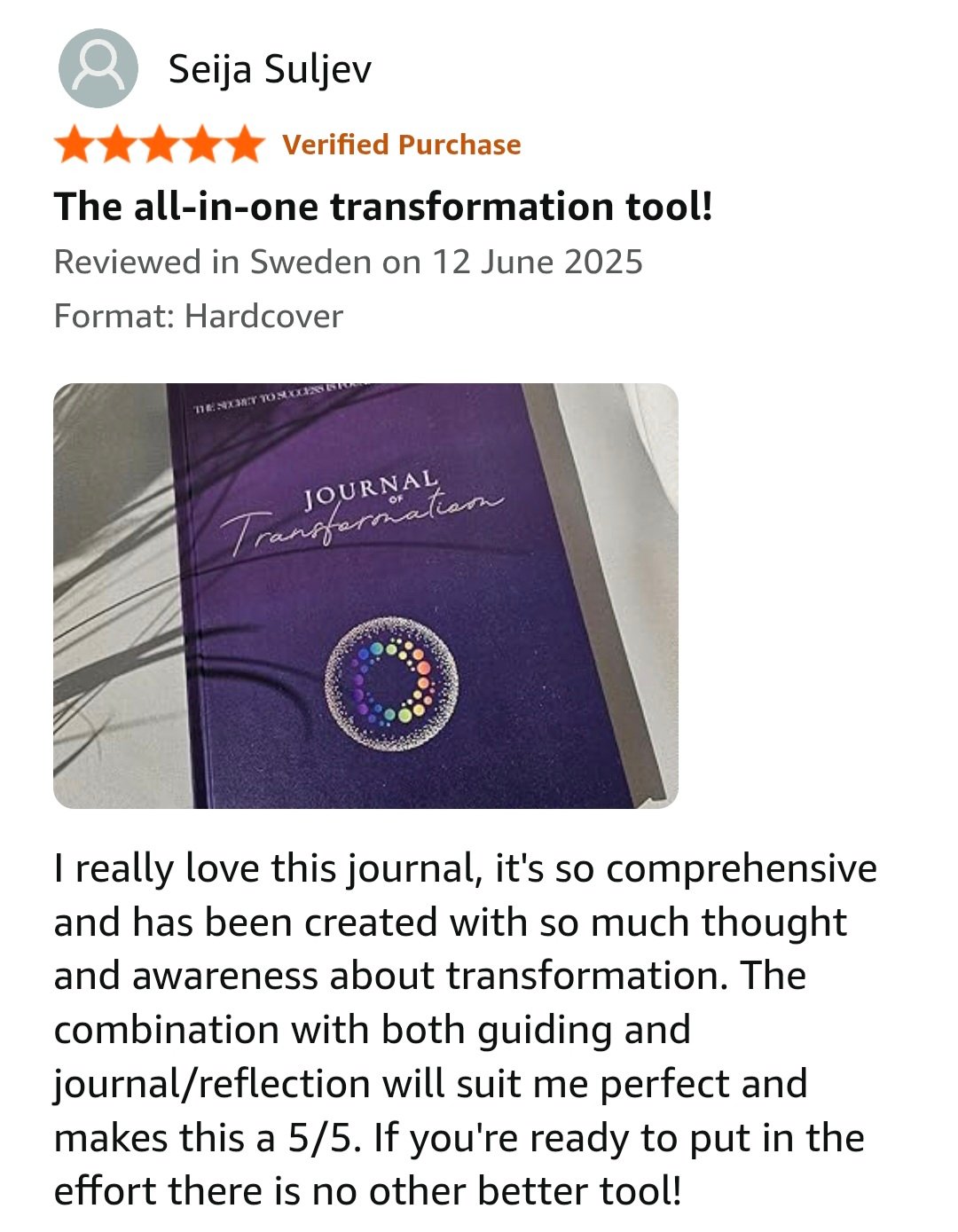 Take control over your daily routines and create the life you want! The Journal Of Transformation is designed to support turning your dreams into reality, reaching your goals and transformation you want to make. It focuses on the practical daily doing and actions that create new neuropathways and routines. It uses the affecting key factors and your subconscious mind supporting you on this journey. You get guidelines but still enough freedom to use it according to your individual needs and preferences that creates self-confidence and more success.